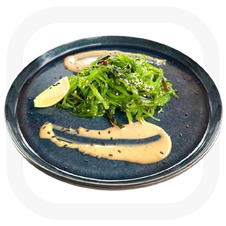 Mixed salad, chuka, cucumber, edamame, roasted sesame sauce, sliced almonds.