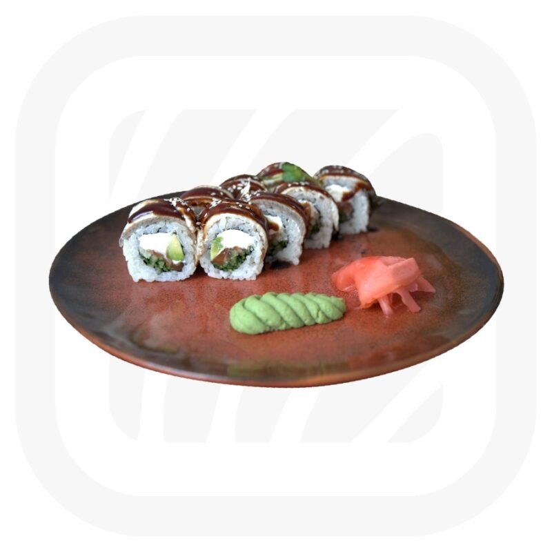 Cream cheese, unagi sauce, breadcrumbs.